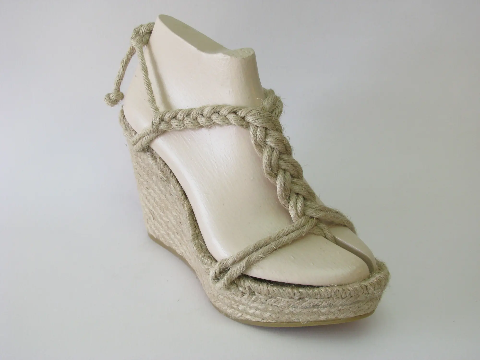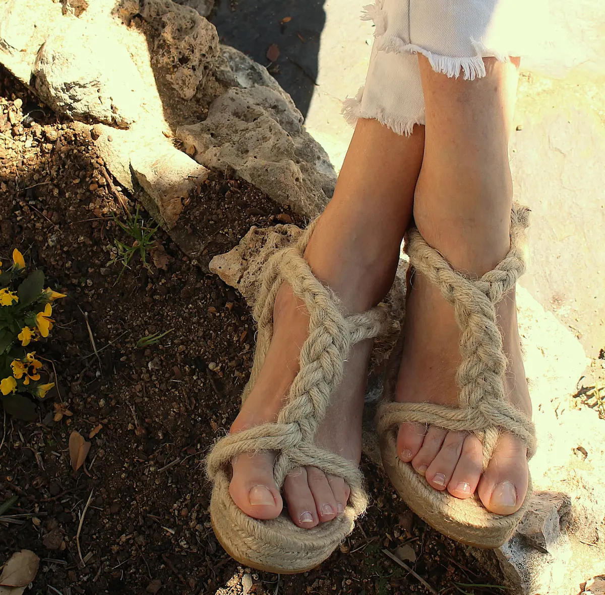 Sandalia trenzada manualmente en nuestro taller. Estética cautivadora e imagen artesanal y protagonista.